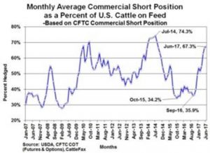 In late 2016, index fund traders started buying cattle futures as part of “rebalancing” their portfolios against other commodities, such as oil, gold and grain. Managed funds added long positions as the market’s rally triggered technical buy signals. Meanwhile, cash market buyers – meat processors, primarily – took long positions as the number of slaughter-ready animals available was lower than expected.